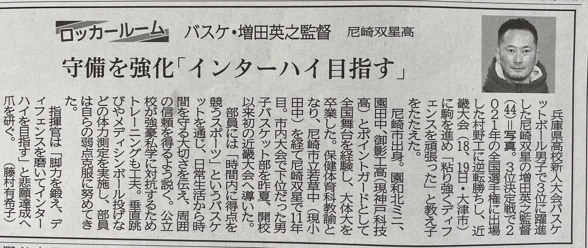 今回の総体では、兵庫県ベスト4入りが出来たので、次はインターハイ、ウインターカップの出場を目指します。