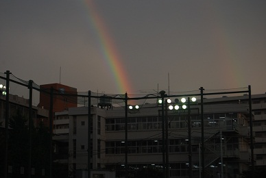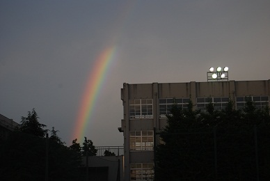 7月12日(火)に、尼崎中消防署の指導の下で火災避難訓練を実施しました。その日はきれいな虹が校舎に架かっていたので、一緒に写しました。 戻る