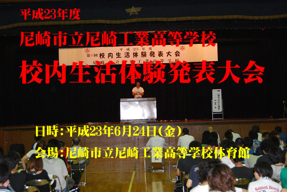 発表順 発表生徒名 演題 (1) 機械科2年 渡久山 祥吾 「毎日が綱引き毎日が勝負」 (2) 機械科1年 大城 俊 「学校生活」 (3) 電気科3年 坂本 直也 「普通の人間には興味がありません」 (4) 機械科4年 小池 博貴 「学校が嫌いです」 (5) 機械科3年 的場 丈二 「シンドイ闘い」 (6) 電気科1年 上之浦 拓也 「市尼工に入学して」 (7) 電気科2年 多田 信太郎 「1年間を振り返って」 (8) 電気科4年 橋本 遼 「変わっていく自分」