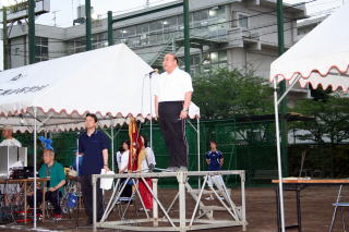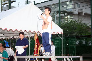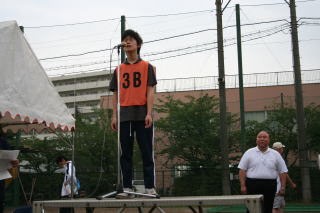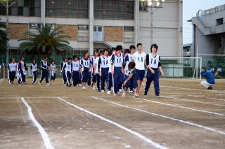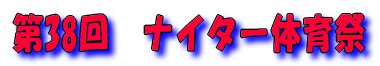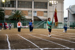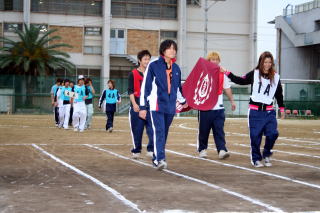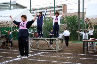 T 開会式(18:10〜18:30) U 競技(18:30〜 ) V 閉会式 ・ 生徒入場 種目 ・ 成績発表 ・ 開会宣言 @ 合同体操 ・ 表彰 ・ 国旗・校旗掲揚 A 100m競争 ・ 講評 ・ 優勝杯返還 B 綱引き(5位・7位決定戦) ・ 国旗・校旗降納 ・ 学校長挨拶 C コミックレース(綱引き) ・ 閉会宣言 ・ 育友会会長挨拶 D 障害物競走 ・ 祝電披露 E スウェーデンリレー ・ 生徒会会長挨拶 F 綱引き(準決勝・決勝) ・ 選手宣誓 G 百足競争 H ソフトボール投げ I クラス対抗リレー