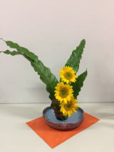 ひまわりや朝顔といった夏らしい花材を用いて、先生からのアドバイスを受けながら各自の作品を作り上げていきました。
