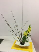 週末に学校説明会があり、それに向けてフラワーアレンジメントを作成しました。