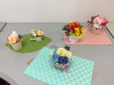 ツツジやガーベラ、キクなどを使用し、一人ひとり作品を仕上げました。