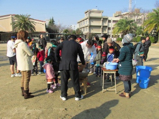 1月11日(土)、晴天の中、運動場で子ども会の地域交流事業が行われました。