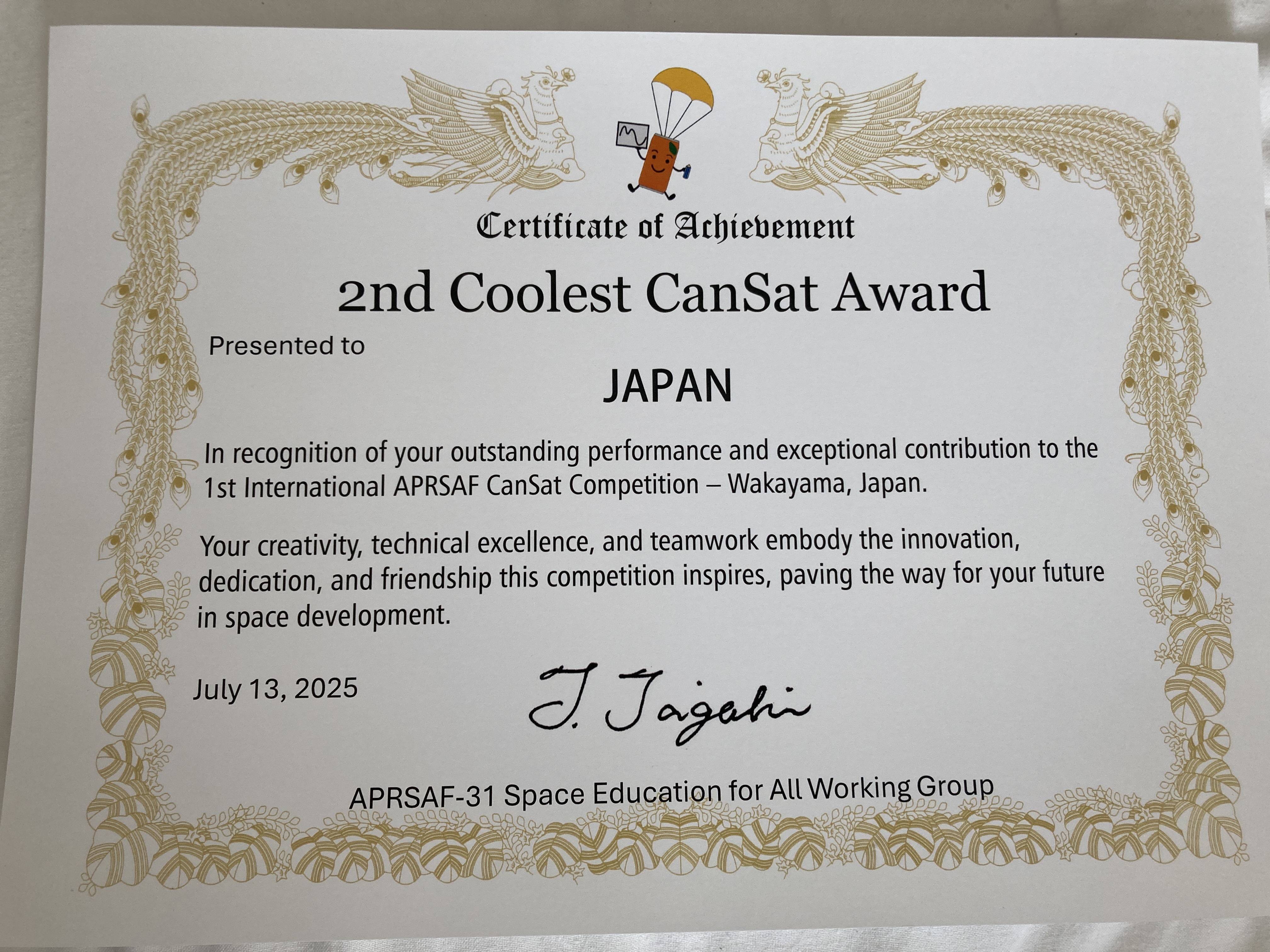日本代表 宇宙甲子園(缶サット部門)・・・世界大会準優勝(JAXA日本チーム)