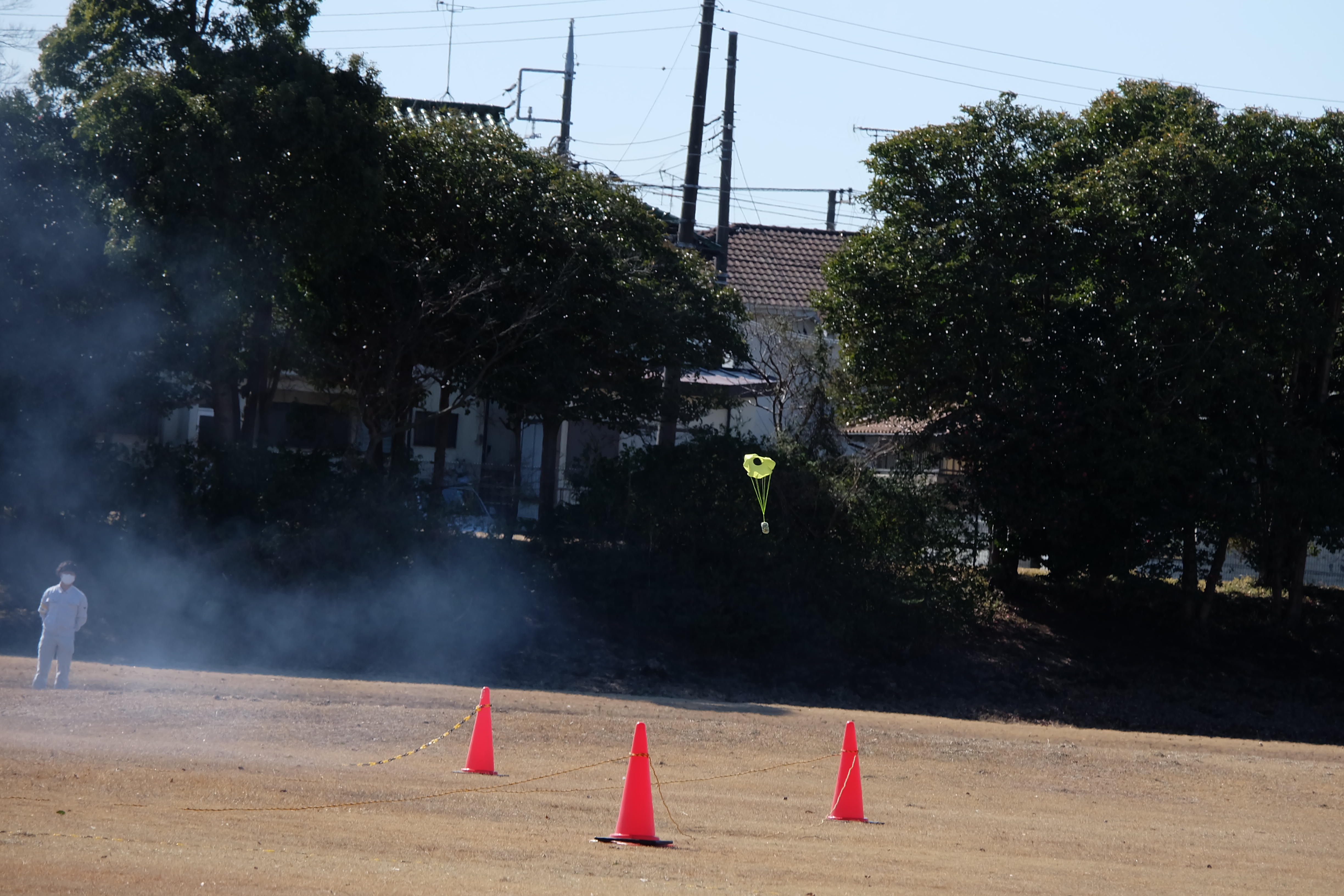 F型エンジンを利用したロケットを開発し、ロケット部門に出場しています。 大会では目標高度と滞空時間が決められ、その規定にあわせたロケットを設計し 製作します。設計したロケットやパラシュートはコンピュータシミュレーション を繰り返して開発を進めていきます。また、ロケットには鶏卵2個搭載し、落下 時に破損すると失格になります。