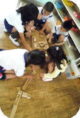幼稚園にもだんだん慣れてきた、年中のさくら組。 自分で遊びを見つけて遊び始めています。 |