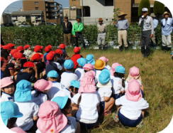 尼崎北小学校4年生と一緒に収穫しました。 |