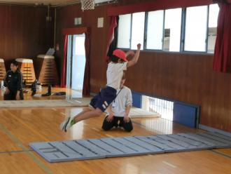4月25日(金) 全校リズムジャンプがありました。はじめに6年生が整列などの集団行動のお手本を1年生~5年生に見せてくれました。そのあとは、全員でリズムジャンプの体の動かし方やジャンプの仕方を確認し、ペア学級で教え合いをしました。最後は音楽に合わせて全員でリズムジャンプをしました。みんな大きな声で掛け声をかけながら、元気よくジャンプすることができました。みんな楽しそうでした。