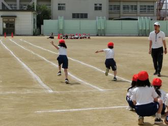 4月17日(木) 2年生が50メートル走のタイム測定をしました。晴天の中、子どもたちは「位置について、よーい、ピッ!!」の合図のあと、力強い走りでゴールを目指していました。見ている子どもたちも大きな声で友だちを応援することができていました。 |