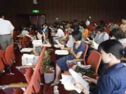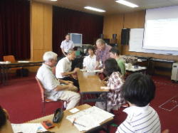 | 外国語活動における「体験的理解」の本当の意義から評価まで実践映像を交えながらご講話いただきました。 研修中にペアで話し合ったり、演習を行ったりしたので、大変活動的な研修となりました。 熱心に議論を交わしたり、笑顔で演習をしたりする先生方の姿が大変印象的でした。 | |