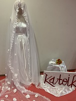 こだわりは、長いヴェールです。花やパールの位置など細部もこだわりました。