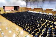 離任式終了後、対面式が行われ、1学年と2・3学年が初めて顔を合わせました。