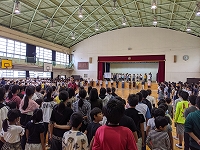 5時間目に明城なかよしラリーの全校準備会を行いました。6年生の児童が中心となりラリーの説明と安全についての注意をしました。また、ラリーが終わってからのレクリエーションについても話し合いました。
