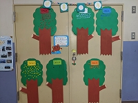 今日で読書週間が終わりました。図書室の前には読書週間中に借りた本のシールが貼られた各学年の木が掲示されていました。学年によって差はありますが多くの児童が本に興味をもってくれたと思います。