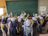 下校時間に子ども達が夏ミカンの木に集まっていました。のぞいてみると大きなアゲハチョウの幼虫を観ていました。いろいろなものに興味をもって観察をすることは良いことですね。さなぎになってチョウチョになるのが待ち遠しいですね。