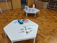 今年度の短い夏休みに子どもたち作ってきた作品を生活科室に展示しています。保護者のみなさまにはご覧いただく機会はありませんが、力作揃いです。また、6年生の夏休みの自由研究も階段にはっています。こどもたちの頑張りが伺えます。