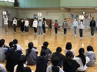 6年生に感謝の気持ちを込めて、6年生を送る会を行いました。例年ならみんなが体育館に入り、出し物をして楽しみますが、今年は6年生以外はテレビでの参加となり、学年ごとに体育館にいる6年生の前で楽しい出し物をしました。6年生に手作りのプレゼントを贈るなど、楽しい時間をすごしました。
