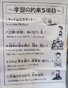 御家庭でも、ぜひ、「学習の約束5項目」「生活の約束5項目」についてお子様と話し合っていただければ嬉しい限りです。
