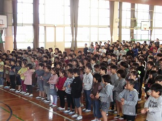 保健委員会の児童から手洗いの大切さを教えてもらいました。風邪などひかない体作りが大事です。