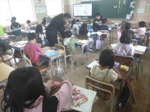 2年生が地域の施設でインタビューしたことを1年生に発表します。 その前に、それぞれのグループに分かれてポスターセッションの形式で 先生たちに発表を聞いてもらいアドバイスをもらいました。 「1年生にわかるように全部言うのではなくいくつかにしたほうがいいよ」や 「自分の思ったことや考えたことを伝えたほうがいいよ」や 「地図は1年生難しいから指でさしてあげるとわかりやすいかも」と 「上手に発表しているよ」とほめてもらっているところもありました。 |