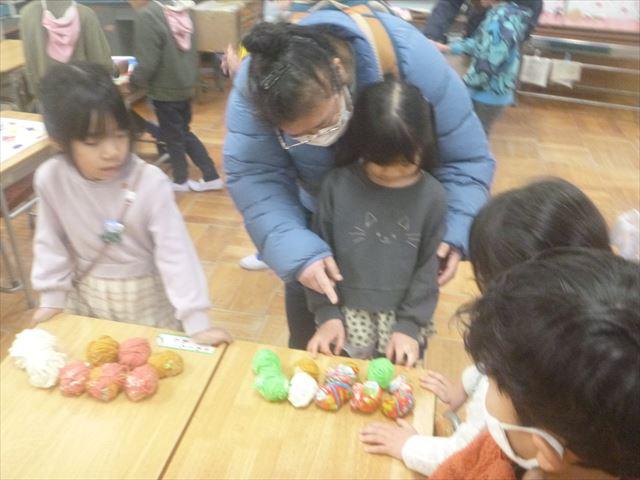 手作りおもちゃの紹介をして、園児に遊んでもらいました。