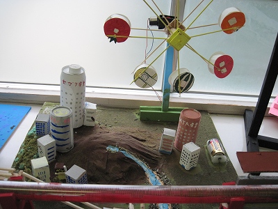 理科創意工夫作品(観覧車のある町) 理科創意工夫作品(小さなジオラマの町)