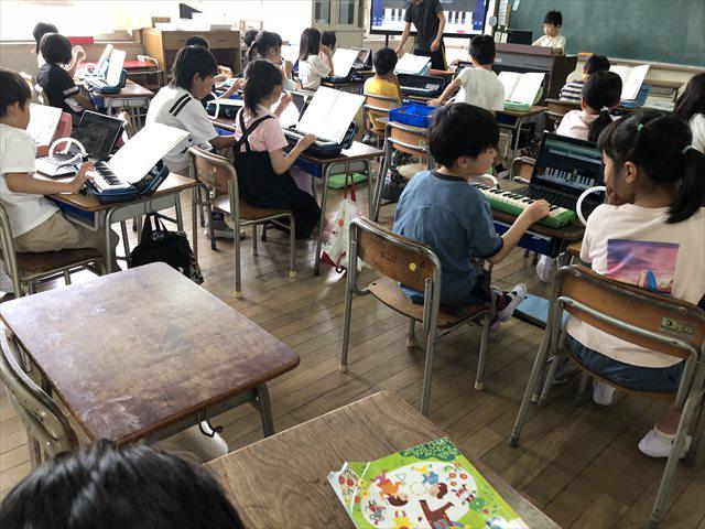 2年生が、音楽で鍵盤ハーモニカを吹いていました。 夏休みに一生懸命練習したのでしょう。 みんな自信たっぷり、上手に吹いています。 「では、合わせてみるよ。」 ♪♬~♩♫♪♬♪~??? あれあれ? みんな、スピードや拍の取り方がバラバラです。 音楽会に向けて「みんなで心を合わせて演奏する」練習は、これからです。 |