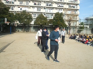再度、運動場に出て、校長先生からのお話を聞きます。