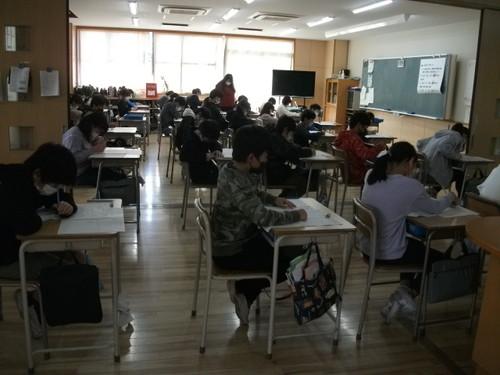 | 12月9日(金)あまっこステップアップ調査を行いました。この調査は尼崎市内公立小学校で、一斉に実施されます。この調査で、国語と算数の学力や生活実態を把握します。この調査の結果をもとに、学校では教育活動の見直しを、子どもたちは自身の学びの振り返りを行います。そして、次のステップアップに向けた取組や改善に活かします。いつもと違う緊張感の中で行われますので、とても疲れたかと思いますが、子ども達は真剣な眼差しで、時間一杯、問題や調査に打ち込んでいました。 | |