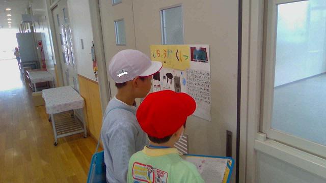 5月16日(金)に1・2年生で学校案内をしました。2年生はお兄さんお姉さんになって1年生に丁寧にお部屋の説明をしました。1年生は2年生に手を引かれながら部屋の説明を聞いて自分の地図にシールを貼っていました。楽しく上手に活動することができました。