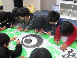 「スイミー」大形絵本の読み聞かせいただいてから、こいのぼりの中の魚のスタンプに、夢や願いを書き込みました。