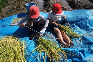甲山では、稲刈りとサツマイモ掘り体験をしました。