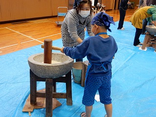自分より大きな杵を持ち上げるのに必死な子がいたり、力強くつく子がいたりしました。