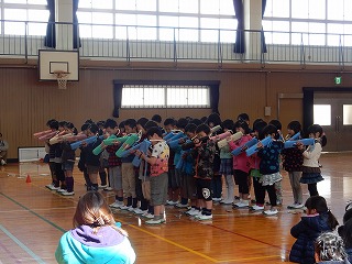 6年生が卒業し寂しくなりましたが、5年生以下のみなさんはきちんと静かに整列していました。