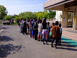 2年生代表からお祝いの言葉を言ってもらい、そのあと1年生はペアの6年生におんぶしてもらって、全員で『じゃんけん壁抜けゲーム』をしました。
