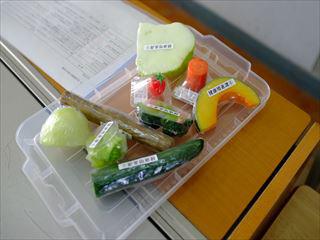 「野菜の栄養素を調べよう」では、1人1台ずつ計算機を渡してもらい、各野菜に栄養素が何パーセント含まれているのか計算していました。 算数で学んだ百分率の計算。みんな四苦八苦していました。 |