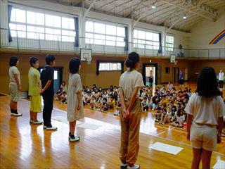 一つの学期の間に数回、朝会を実施しています。 今朝は音楽会に向けて校長先生からの講話があったり、夏休みの作品に係る表彰があったりと、盛りだくさんな内容でした。 |