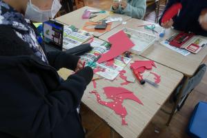 5年生が図工で、「形が動く 絵が動く」という題材で、アニメーションを作ります。