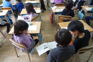 今日は4年生が来室していました。図書室の先生に絵本の読み聞かせをしてもらい、