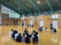 今日は、朝から雨でした。 午前のプログラムを始める前に一時大雨となり、活動を少し遅らせての開始しました。 その後は、晴れ間も見え、活動を行うことができました。 午後からは、仲間づくりプログラム。 クラスに分かれて、大繩、フォトラリー、フラフープくぐり等を行いました。 |