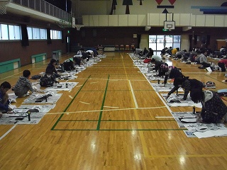 新年早々、広い体育館でのびのびと書き初めをすることができました。