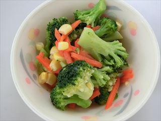 今日の給食の「ブロッコリーのサラダ」は、色とりどりでとてもきれいです。