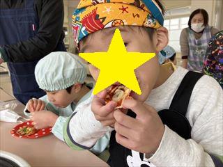 ひまわり学級の子どもたちが、自分たちでクッキングに必要な材料を考え、関西スーパーにお買い物に行きました。 いよいよクッキングの時間です。 楽しい、わくわくする気持ちで、美味しく食べるためにみんなで協力して作りました。 包丁を持つのはどきどきしたようです。先生と一緒に切ってみました。 自分たちで作ったから「おいしい」笑顔です。 |
