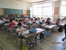 体育館で始業式をした後、夏休みのスピーチや持ってきたものを提出していました。