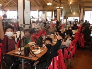 昼食はカレーライスでした。おかわり自由なので、「いただきます」をしてから数分後にはおかわりの所に長蛇の列ができていました。4杯くらいおかわりしていた人もいました。