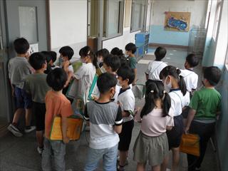 | 学校探検をしました。2年生がリードして、学校のいろんな場所を回り、教室の説明をしていました。 | |