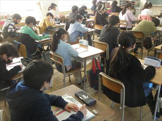 | 3組 詩の朗読の練習をしています。グループで聞き合っています。とても素敵な詩を作っています。 | |