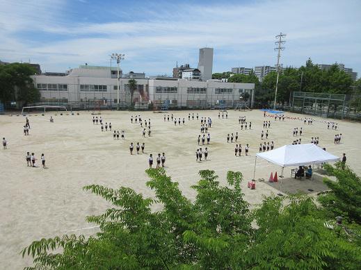 5月23日 朝の会の時間にペアの友だちと自作の名刺を交換しました。どの教室もほのぼのムードでした。 24日の1時間目は体育大会の全校練習でした。先生の指示をよく聞いてきびきび動く高学年につられて、低学年の動きも早くなりました。 熱中症には十分気をつけて、水分補給をしながら練習しています。 |