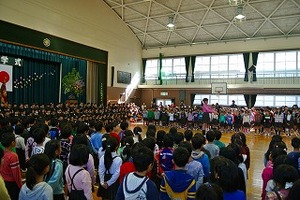 全校生みんなでアーチと拍手で送り出しました。